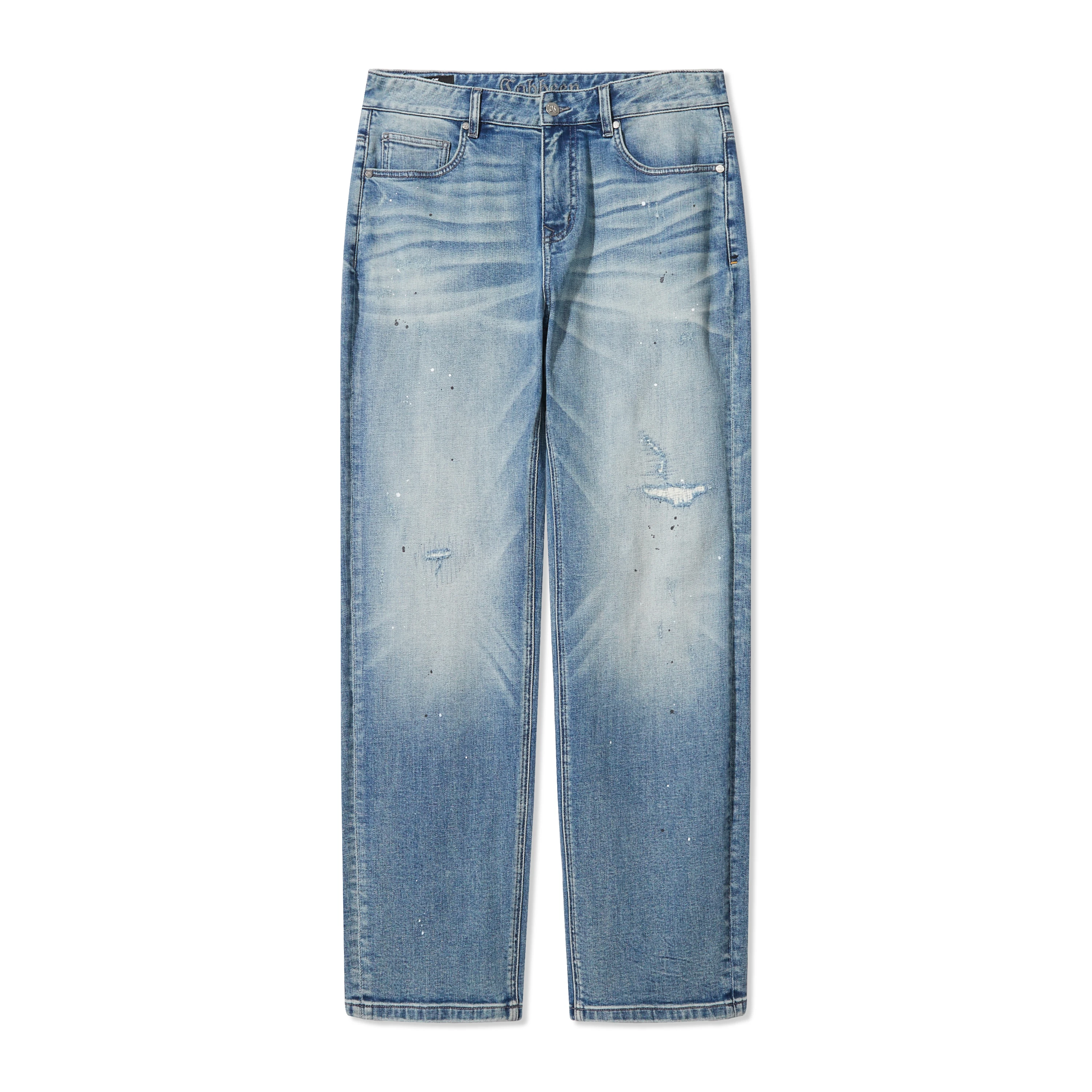 Accented with paint-splash details, adding depth and individuality to the denim