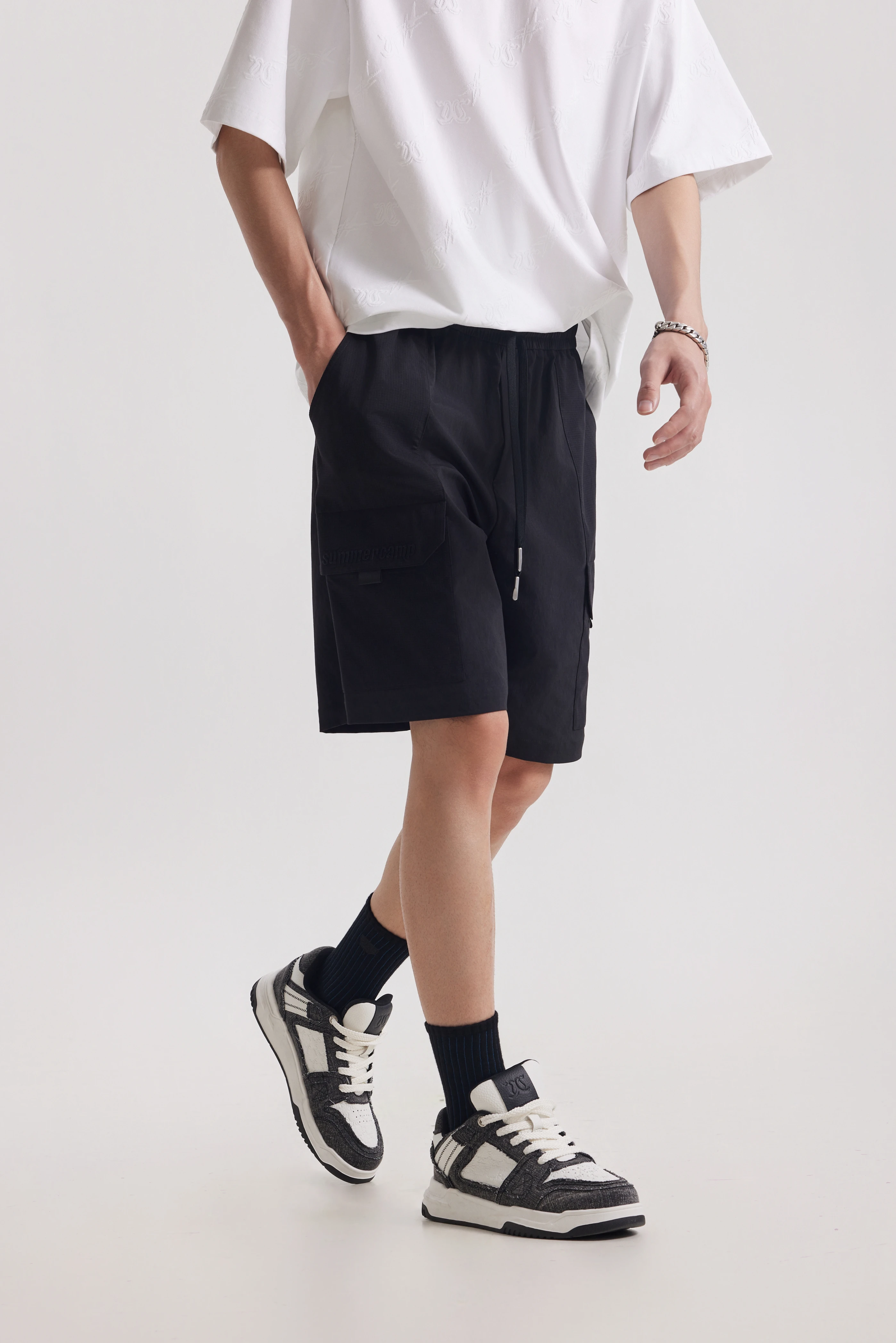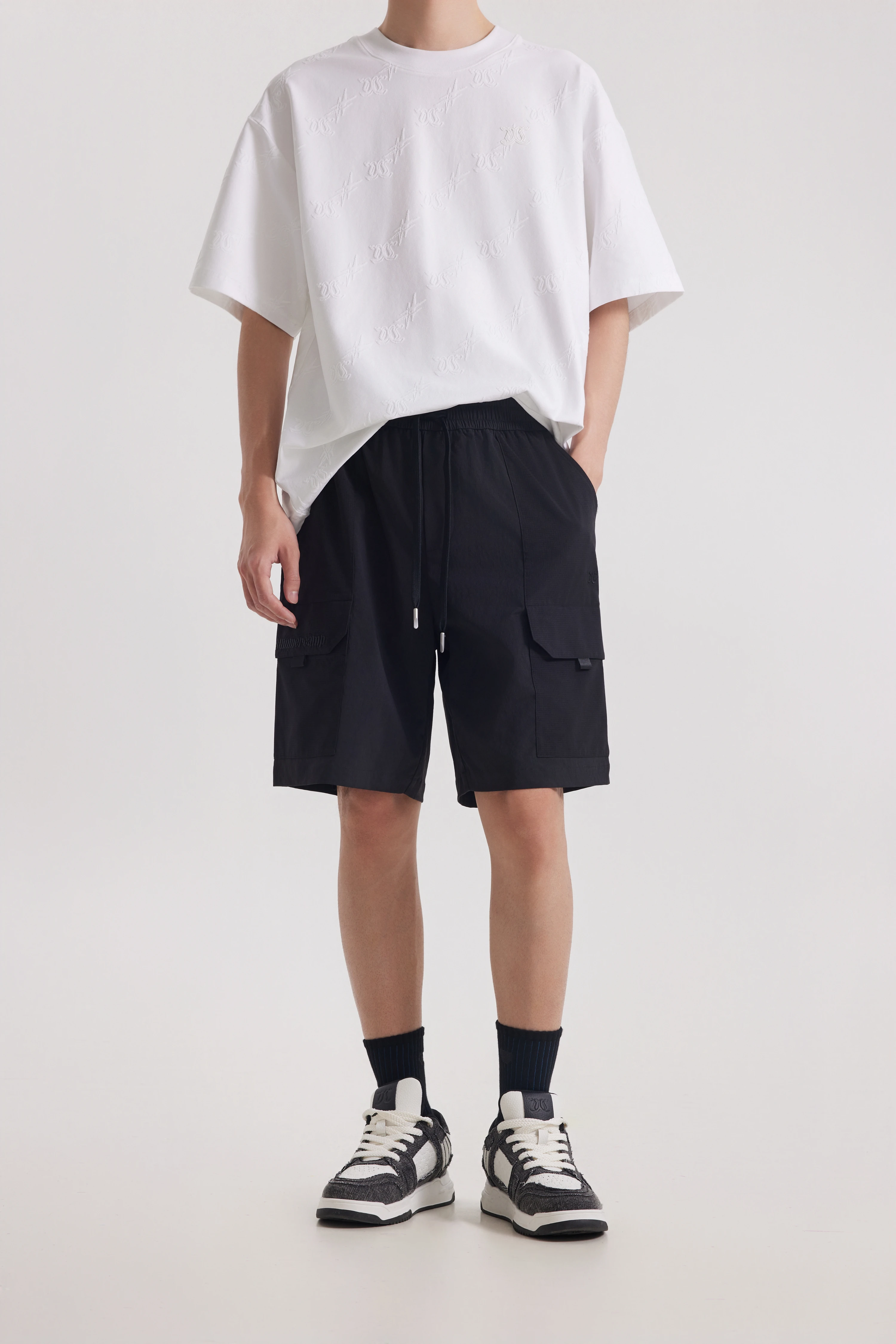 Features side cargo patch pockets: