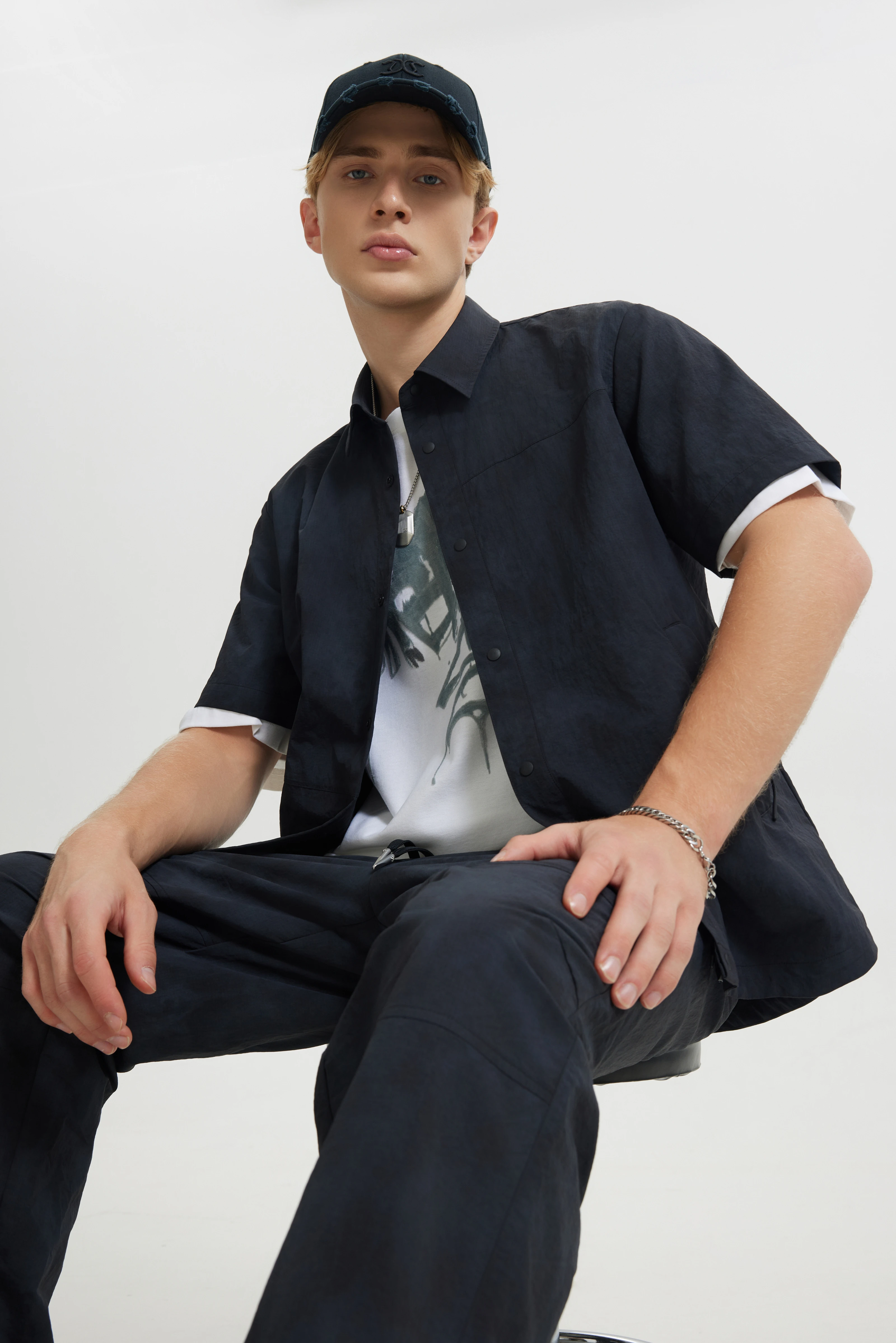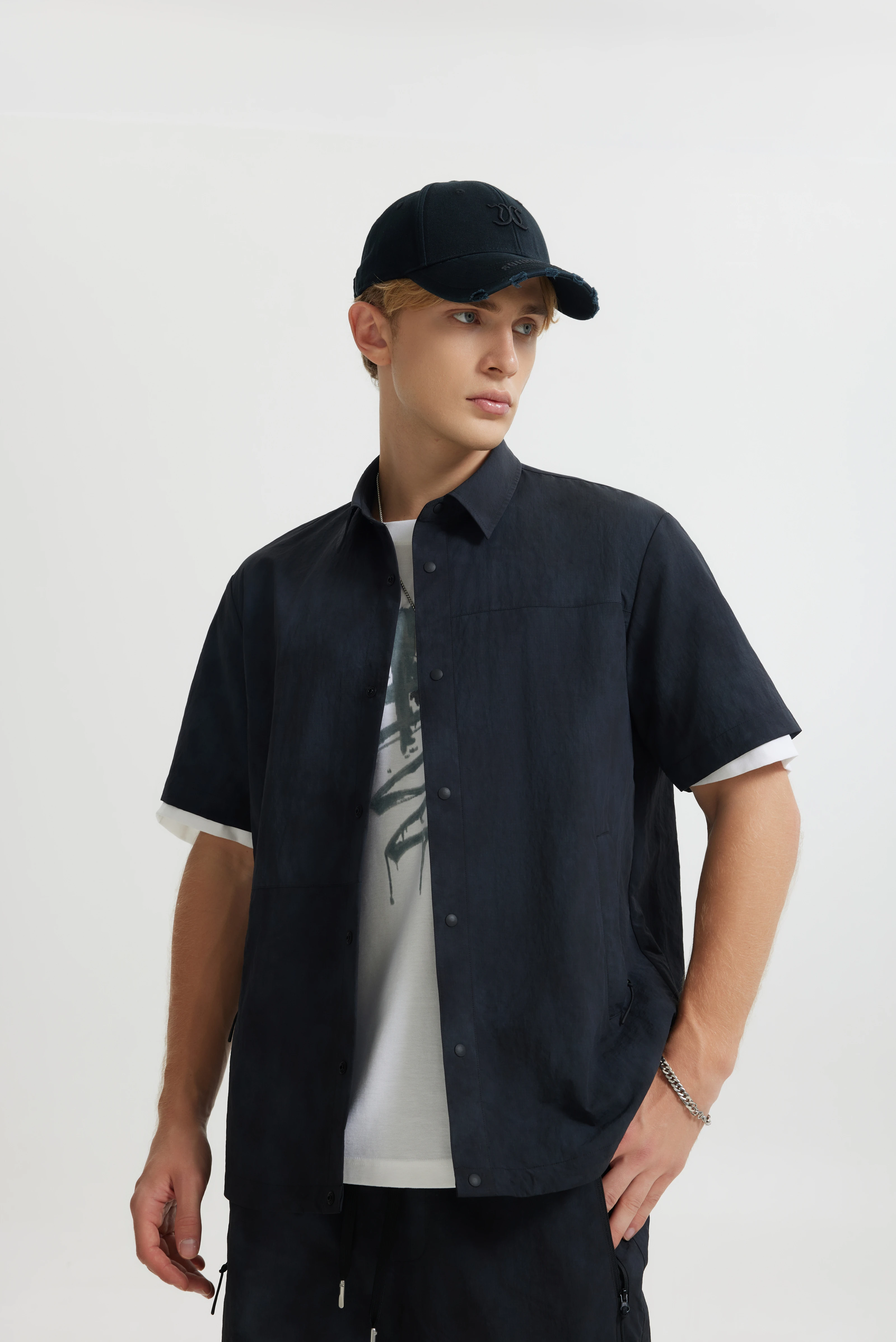 宽松剪裁包容不同身材,呈现更强的潮牌街头气质。