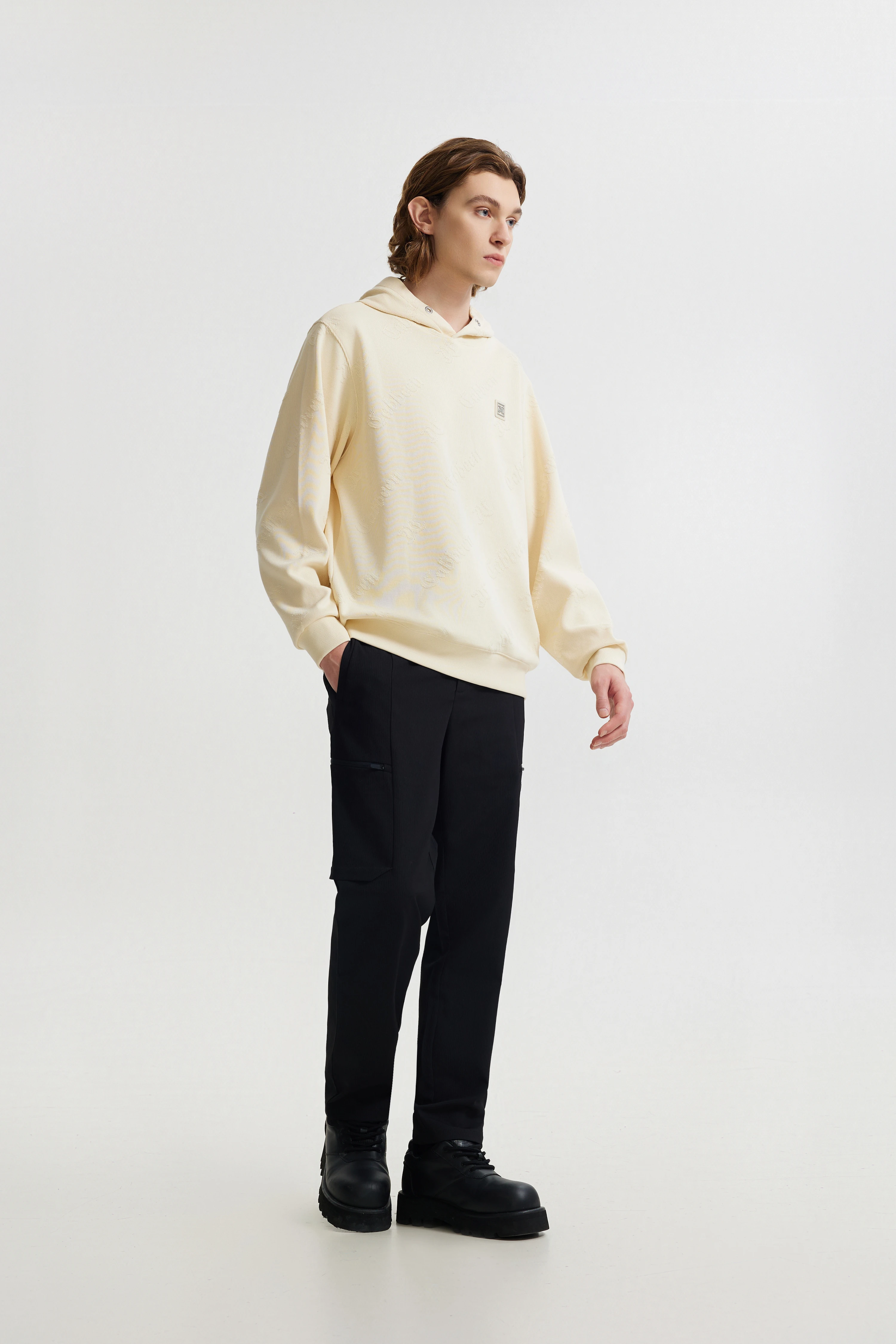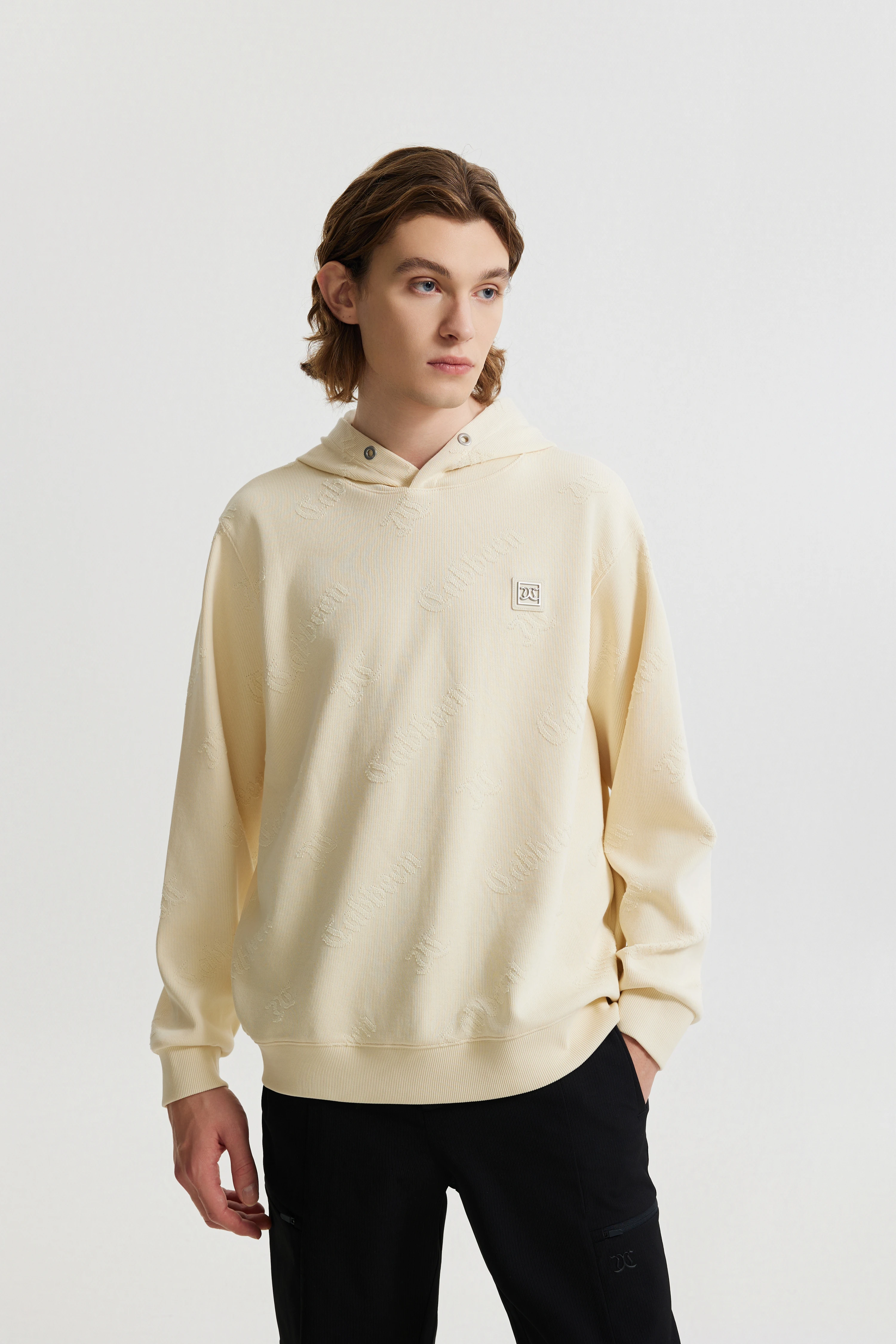 - 82%棉 + 18%聚酯纤维,卡宾LOGO大提花卫衣面料,质感时尚有型