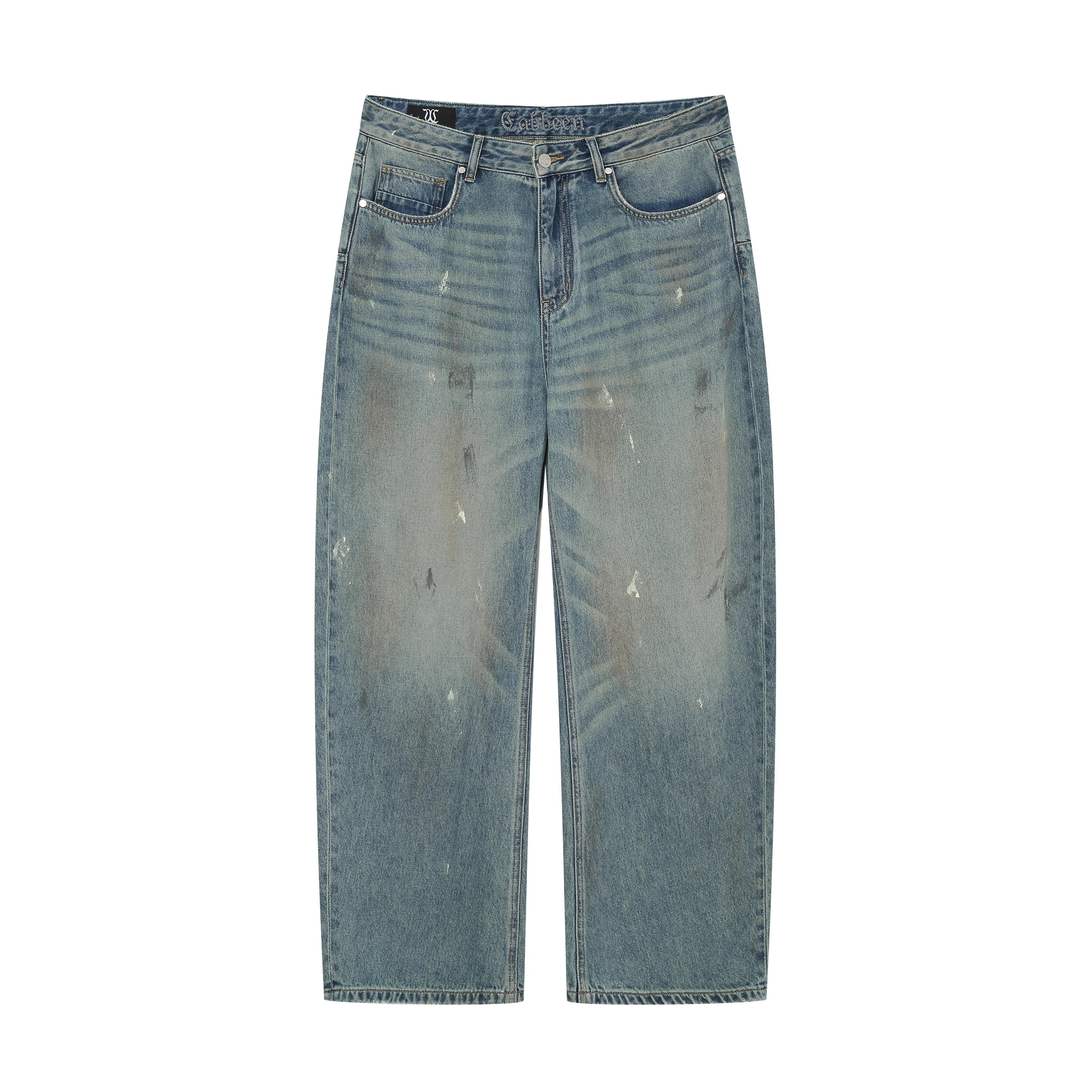 Vintage wash with paint-splash fading, creating a stylish, street-inspired, layered look.