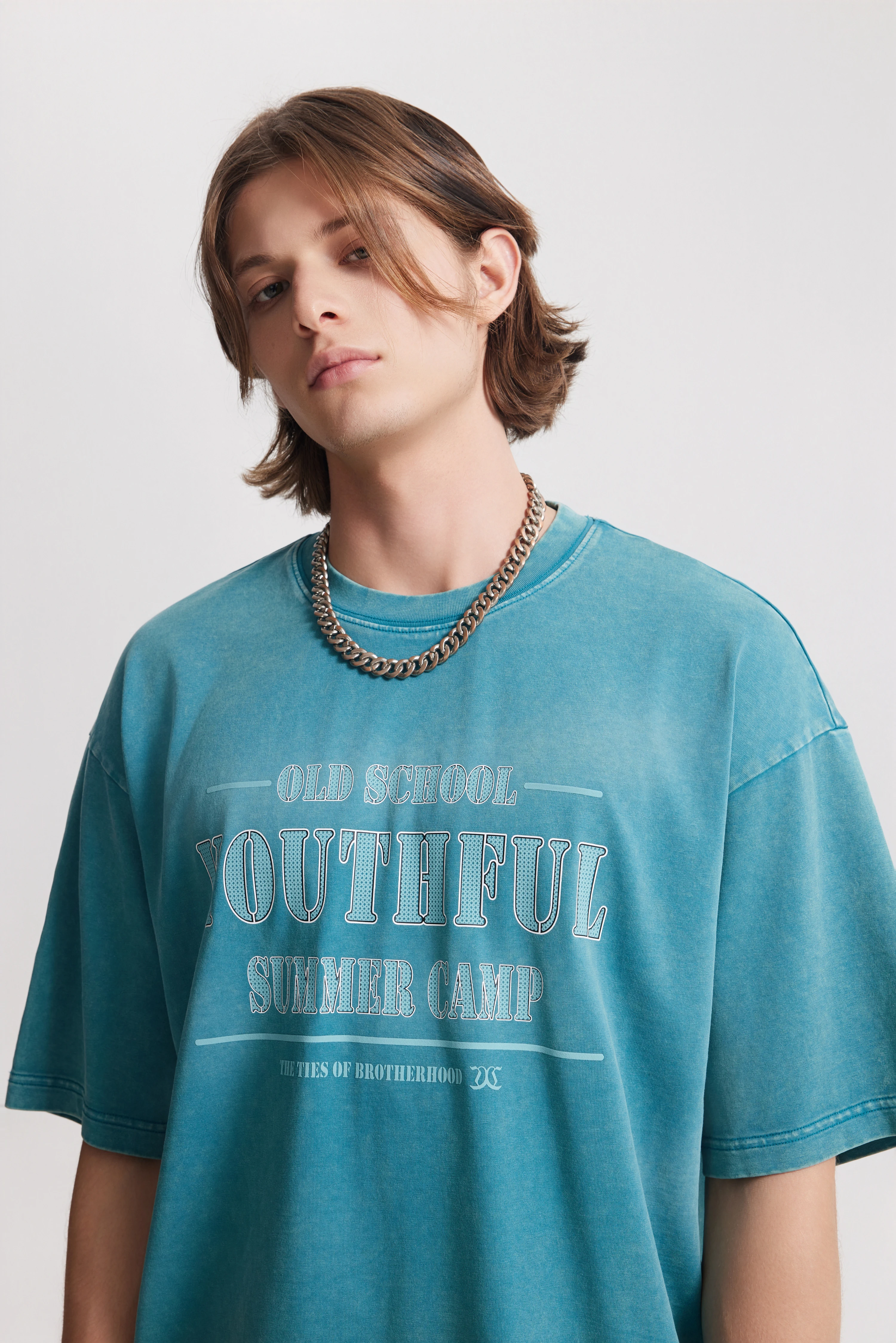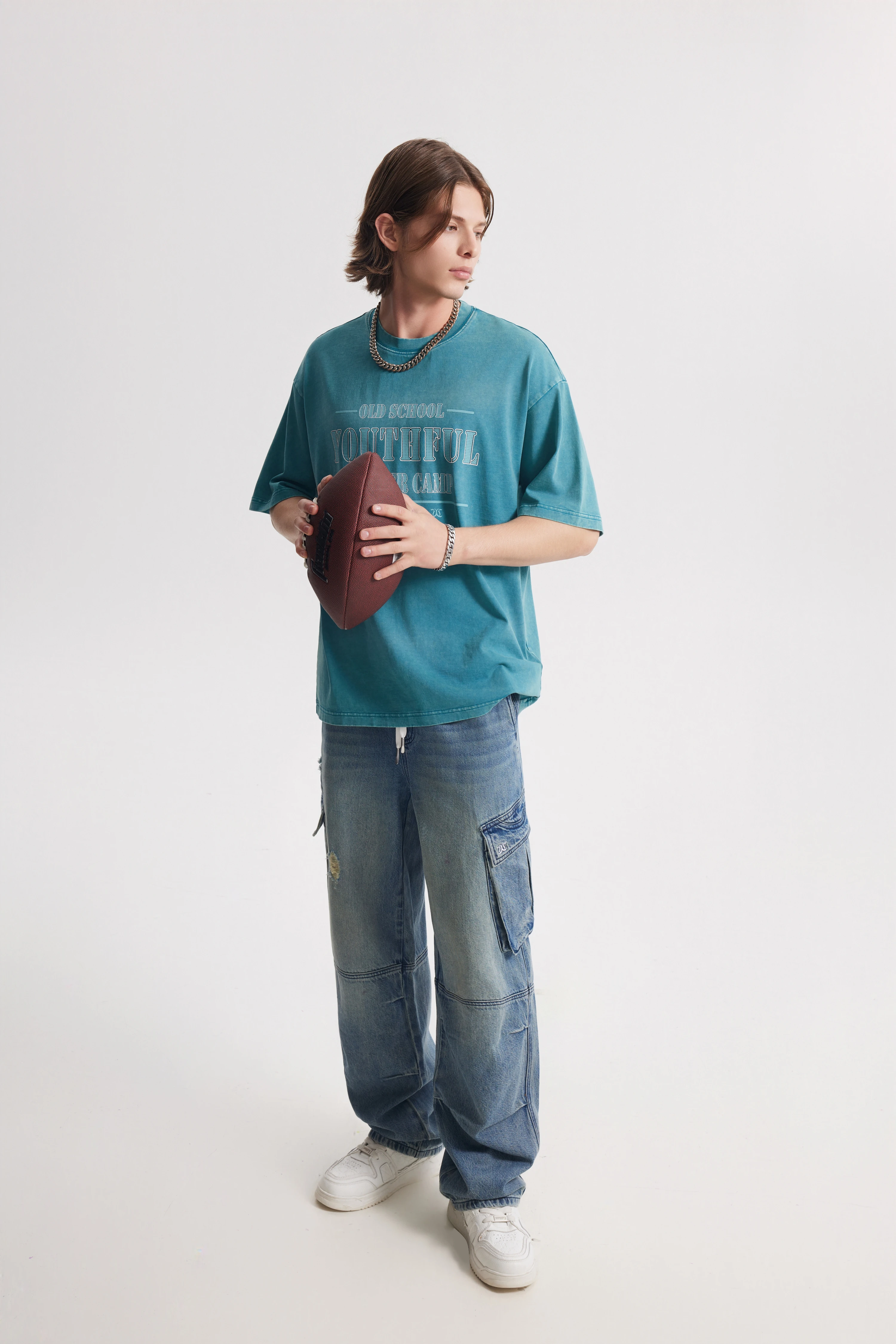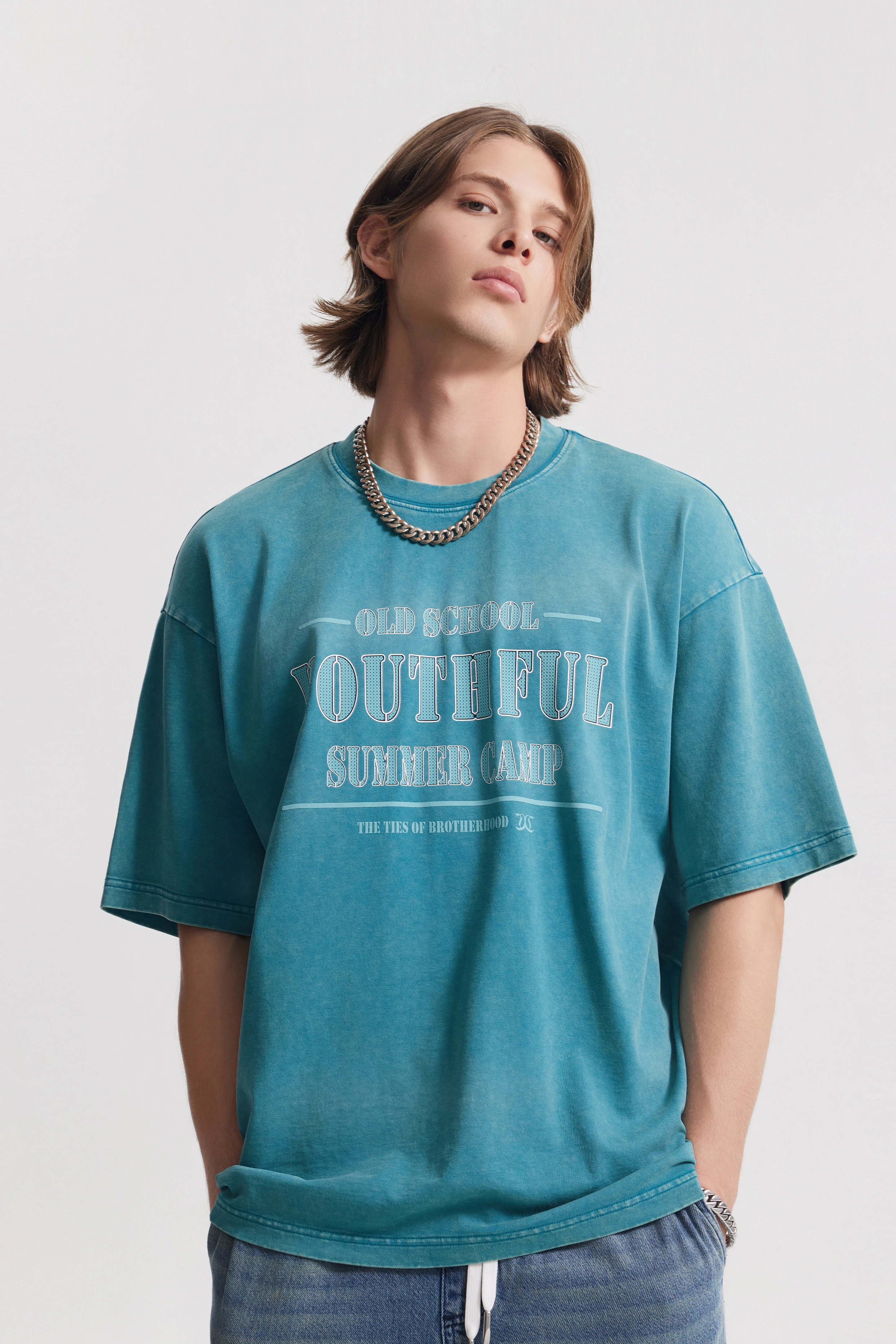 Loose, drop-shoulder silhouette that allows free movement.